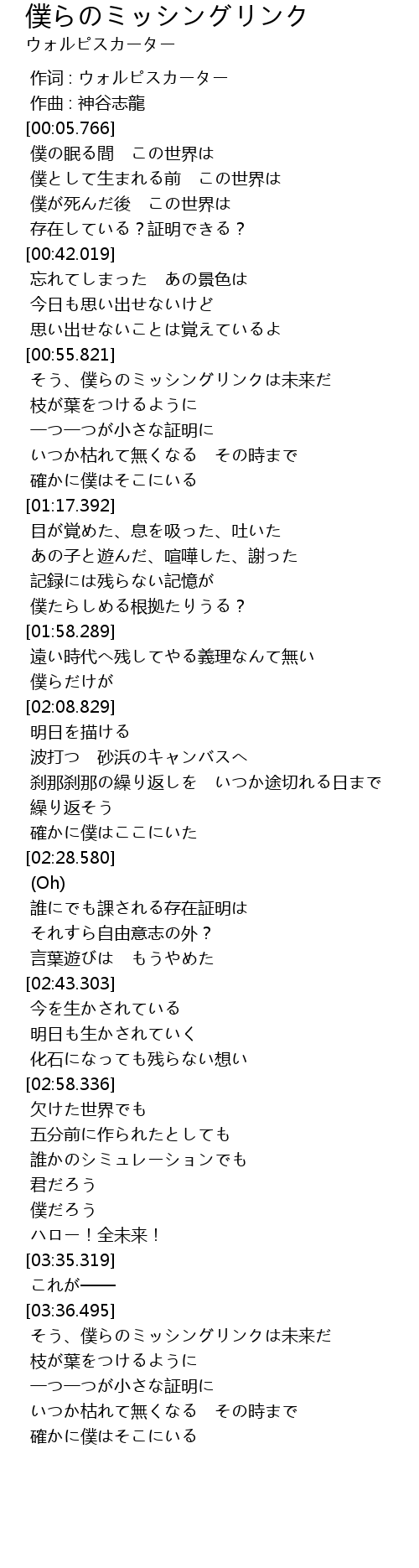 | [03:37.239] | そう、僕らのミッシングリンクは未来だ |