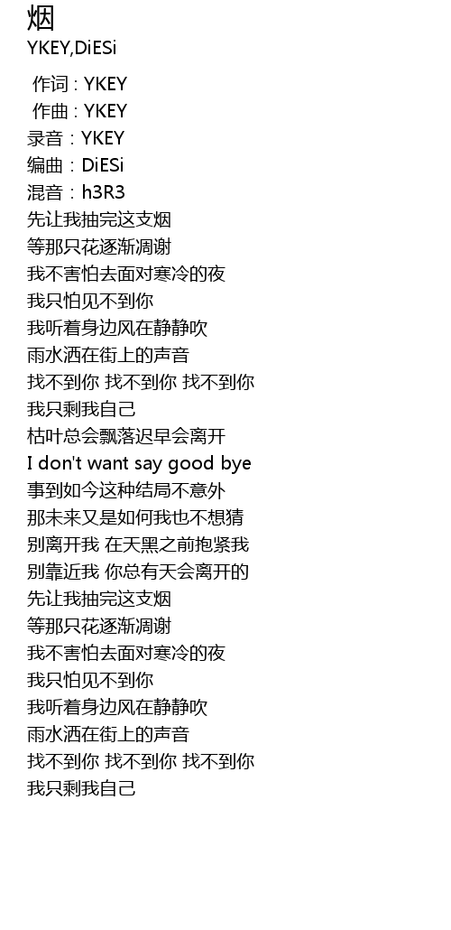 | [01:19.660] | 别靠近我 你总有天会离开的 |