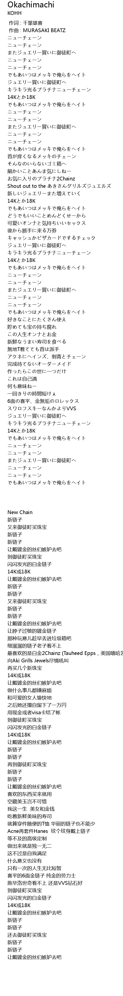 | [00:31.664] | キラキラ光るプラチナニューチェーン |