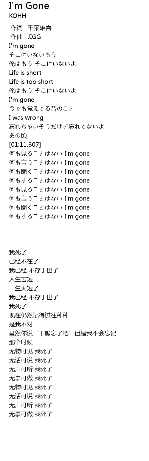 | [01:50.096] | 何も聞くことはない I'm gone |