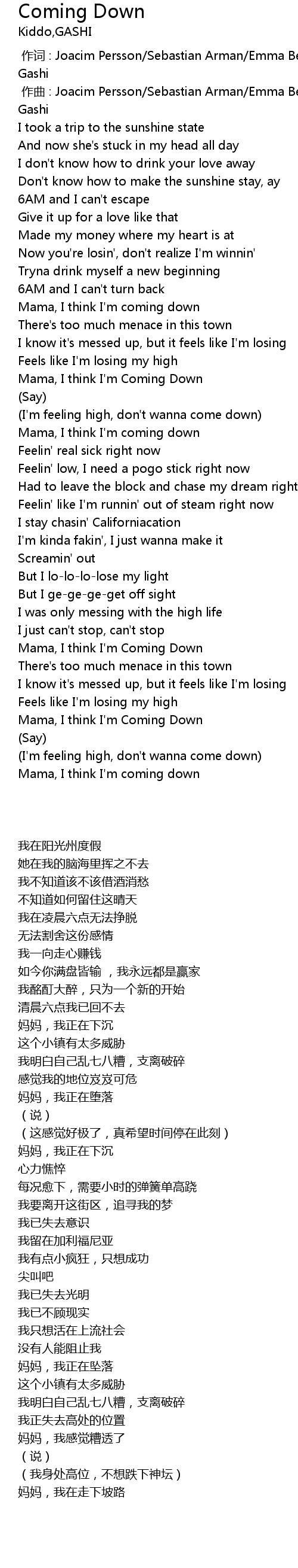 | [02:02.01] | Mama, I think I'm Coming Down |