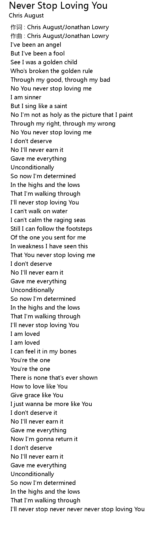 | [02:33.356] | I'll never stop never never never stop loving You |
