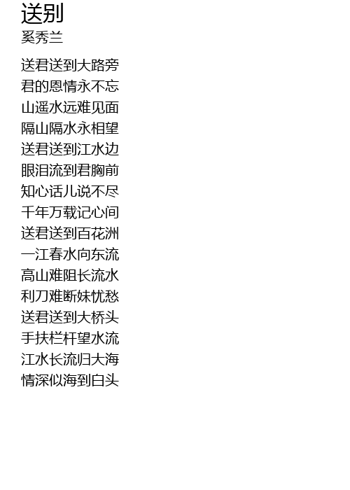 | [01:15.140] | sòng jūn sòng dào jiāng shuǐ biān |