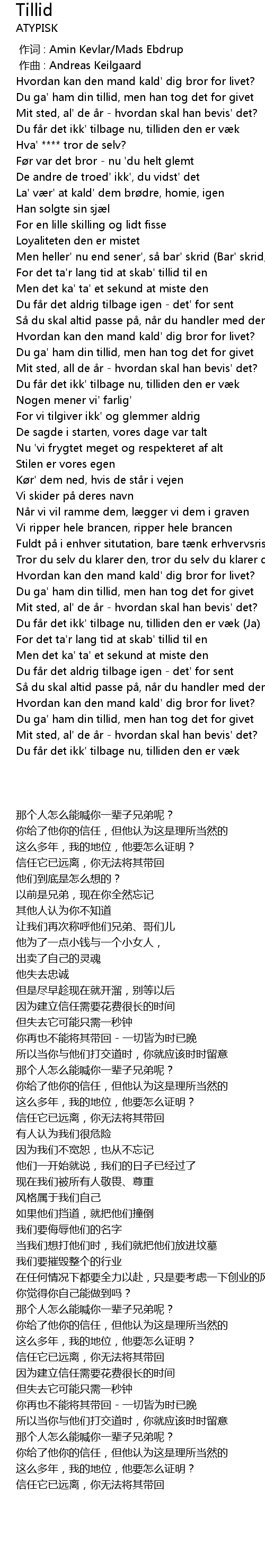| [02:00.16] | Du f r det ikk' tilbage nu, tilliden den er v k Ja |