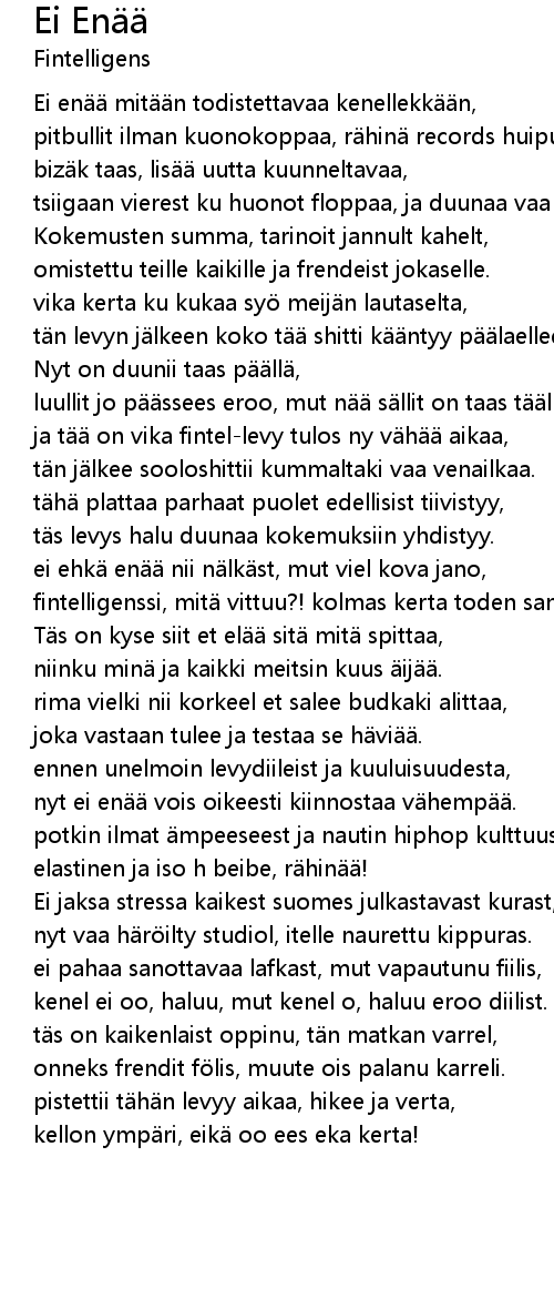 | tähä plattaa parhaat puolet edellisist tiivistyy, | |