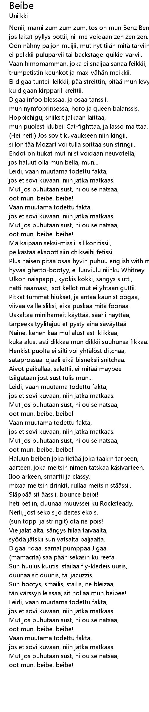 | tän värssyn leissaa, sit hollaa mun beibee! | |