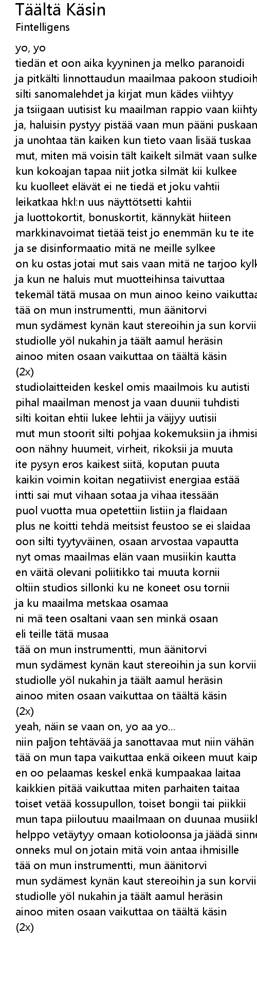 | tekemäl tätä musaa on mun ainoo keino vaikuttaa | |