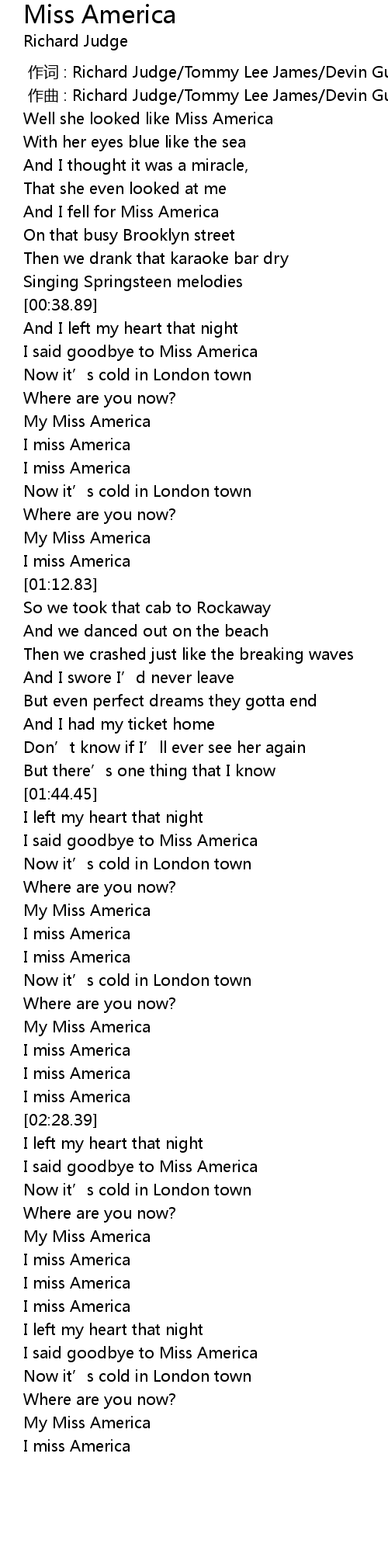| [00:00.000] | 作词 : Richard Judge/Tommy Lee James/Devin Guisande |
