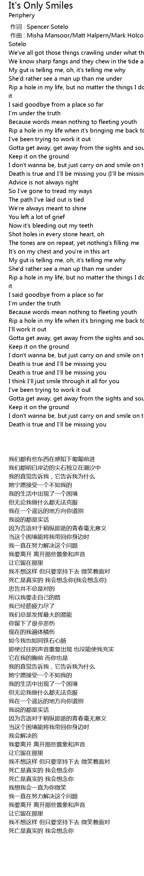 | [01:31.000] | I don' t wanna be, but just carry on and smile on through it |