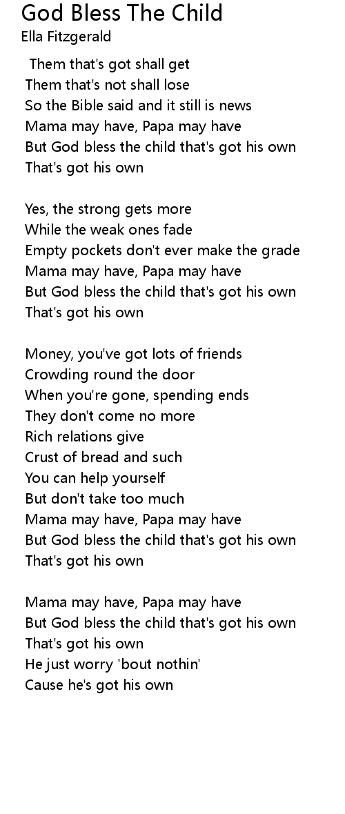 But God bless the child that's got his own |