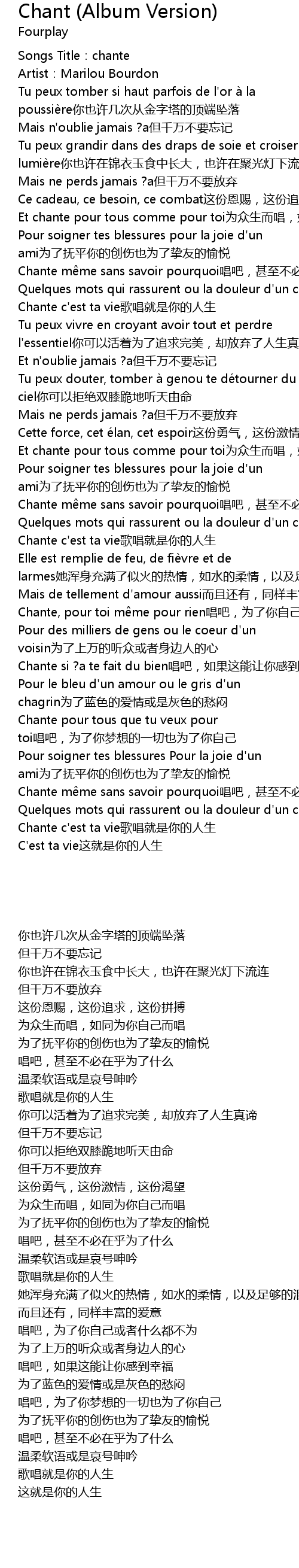 | Et chante pour tous comme pour toi为众生而唱,如同为你自己而唱 | |