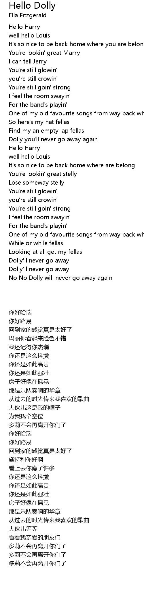Dolly you'll never go away again |