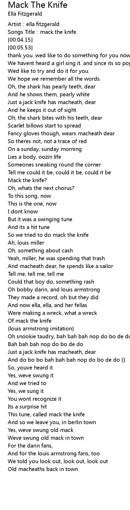 | [00:02.73] | Songs Title: mack the knife |