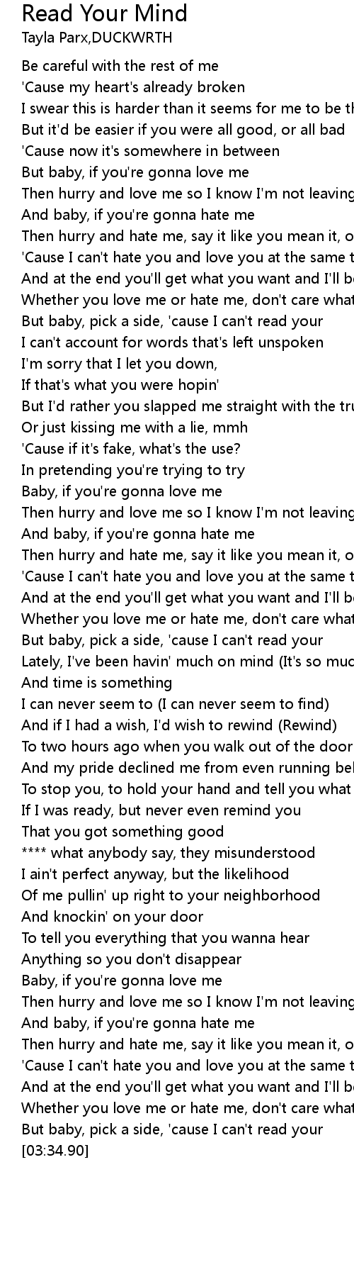 But baby, pick a side, 'cause I can't read your |