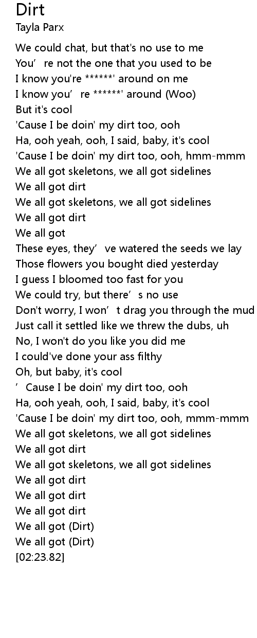 | [00:36.21] | ' Cause I be doin' my dirt too, ooh |