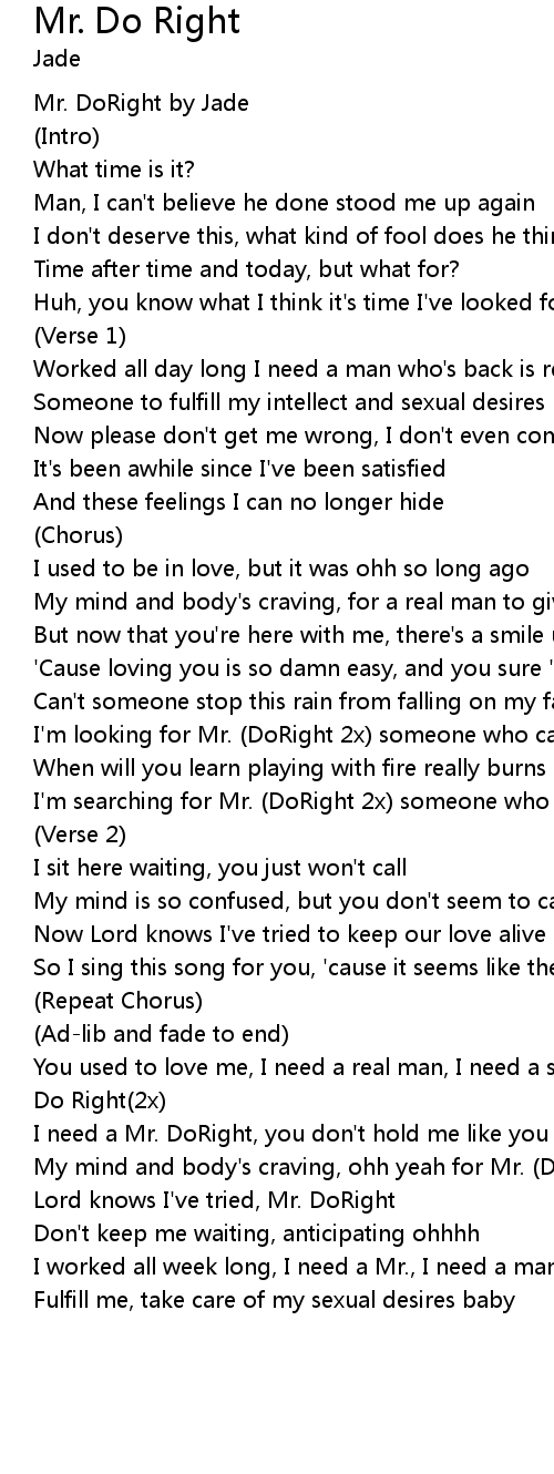 My mind and body's craving, ohh yeah for Mr. (DoRight 2x) |