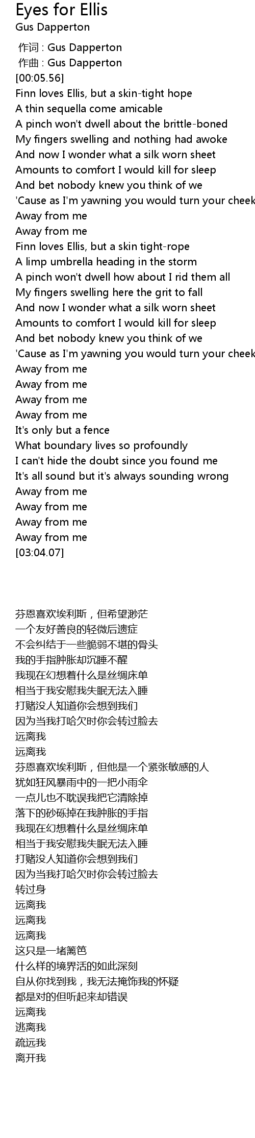 | [00:27.94] | Finn loves Ellis, but a skintight hope |