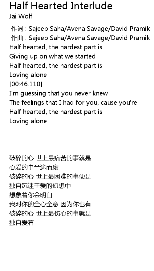 | [00:00.000] | 作词 : Sajeeb Saha/Avena Savage/David Pramik |