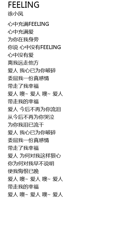 | [00:33.47] | nǐ shuō xīn zhōng méi yǒu FEELING |