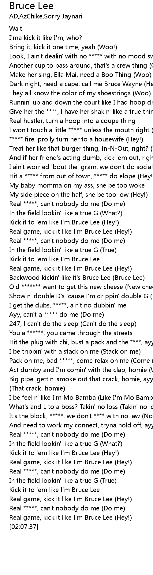 | [01:45.54] | Kick it to 'em like I'm Bruce Lee (Hey!) |