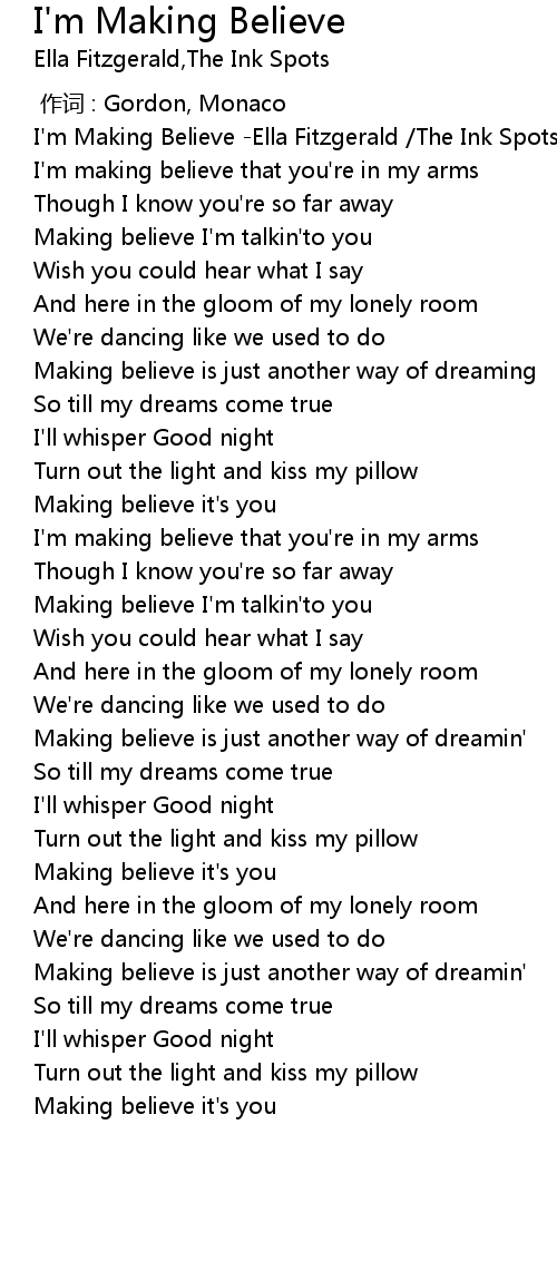 | [00:11.307] | I' m making believe that you' re in my arms |