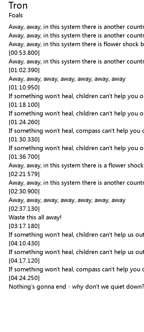 | [01:03.640] | Away, away, away, away, away, away, away |