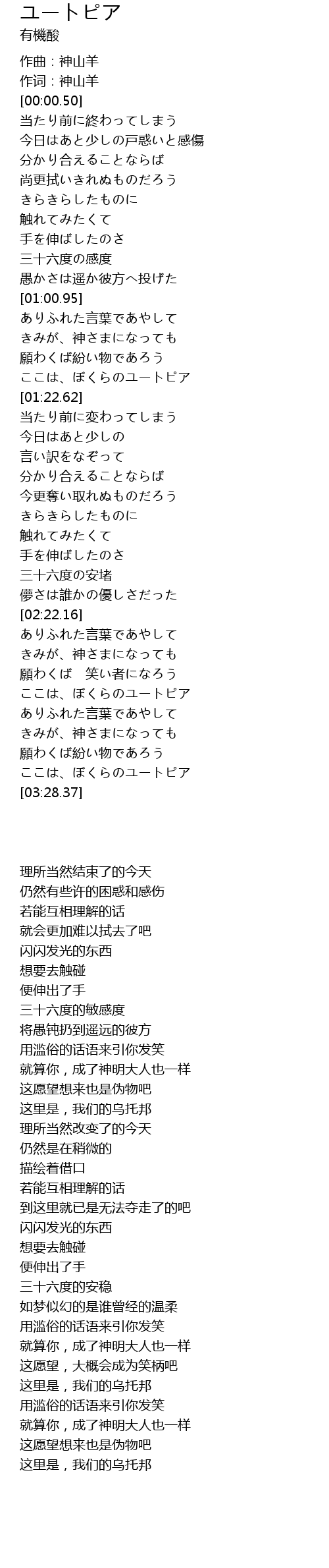 | [02:59.04] | ここは、ぼくらのユートピア |