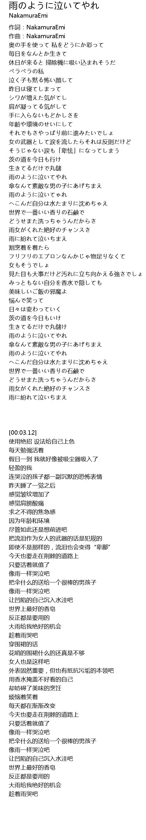 | [00:03.12] | zuò cí: NakamuraEmi |