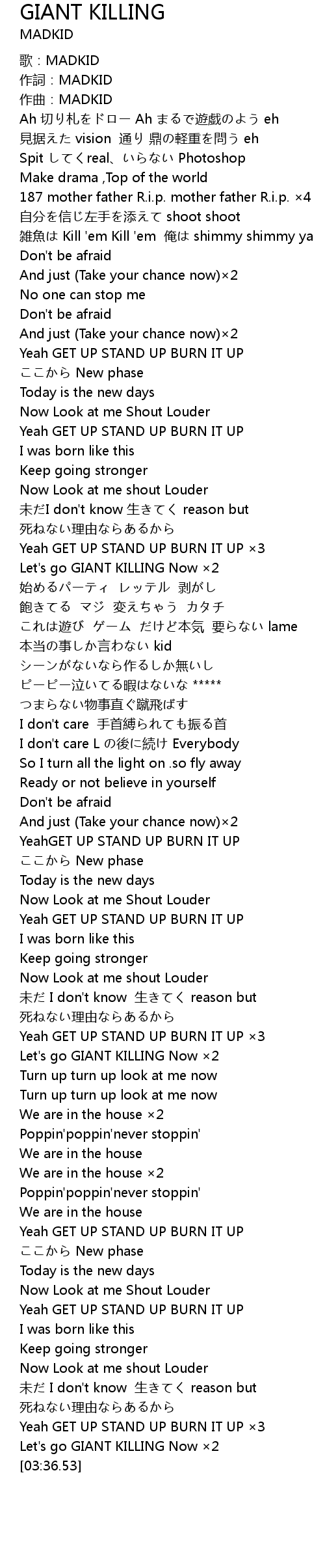 | [03:27.23] | Yeah GET UP STAND UP BURN IT UP ×3 |
