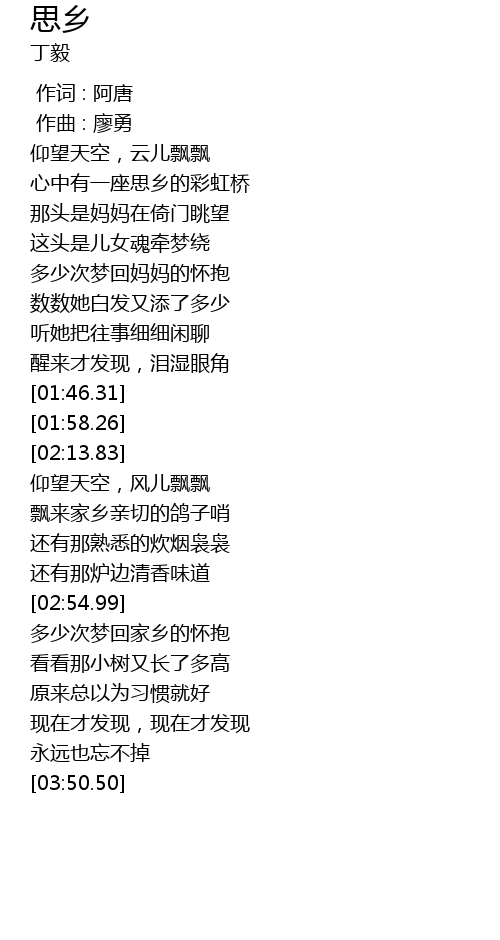 | [00:38.39] | 心中有一座思乡的彩虹桥 |