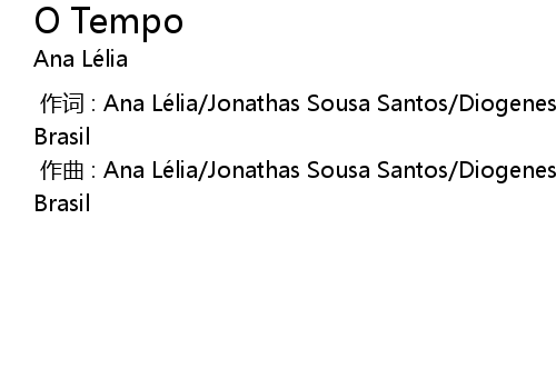 | [00:00.000] | 作曲 : Ana Lélia/Jonathas Sousa Santos/Diogenes Alves Barroso Di Brasil |