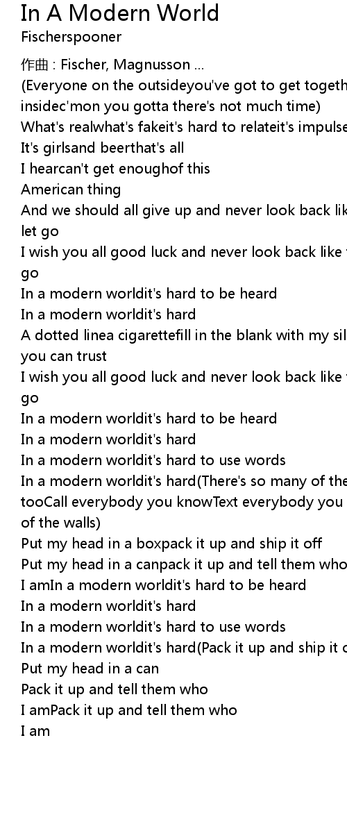 | I amIn a modern worldit' s hard to be heard | |