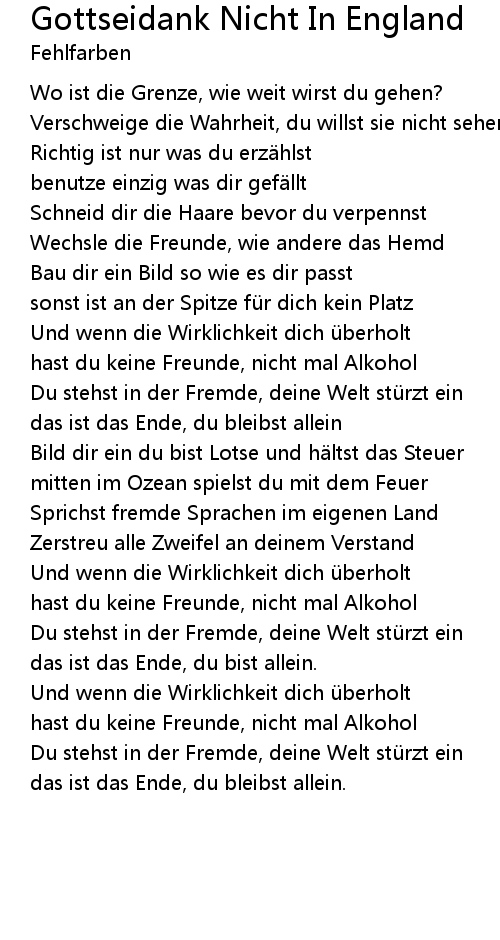 | Du stehst in der Fremde, deine Welt stü rzt ein | |
