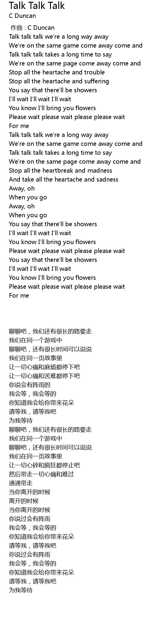 | [00:12.71] | Talk talk talk we' re a long way away |