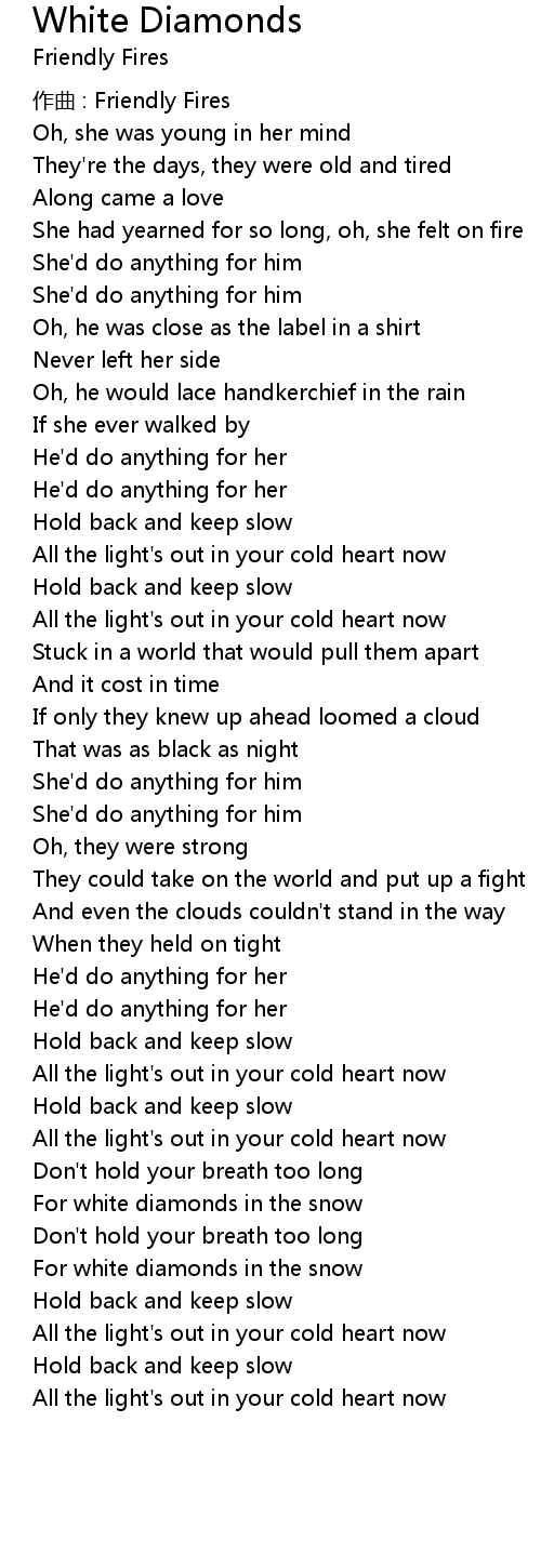 | For white diamonds in the snow | |