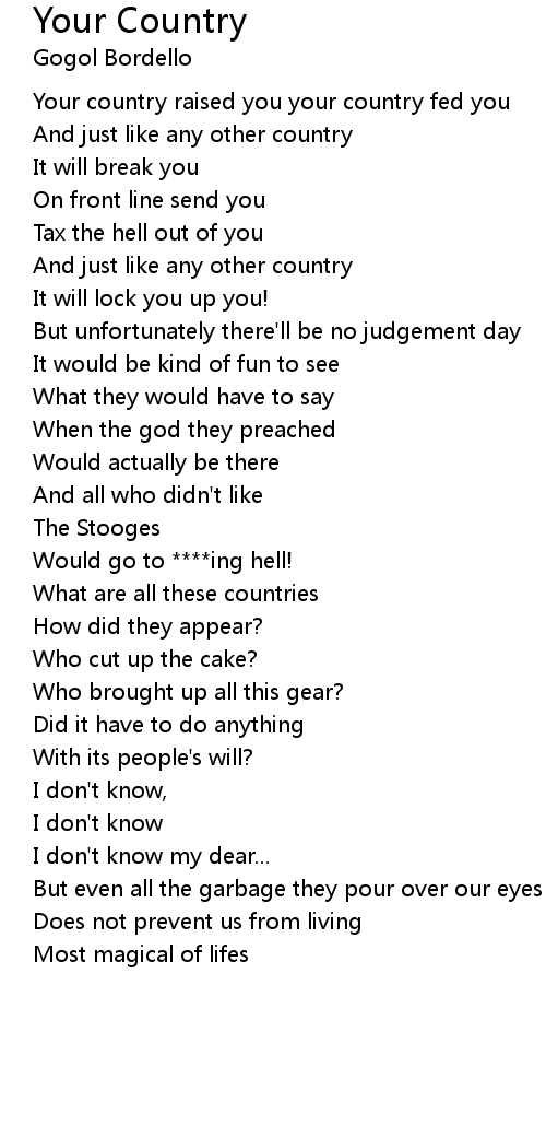 Your country raised you your country fed you |