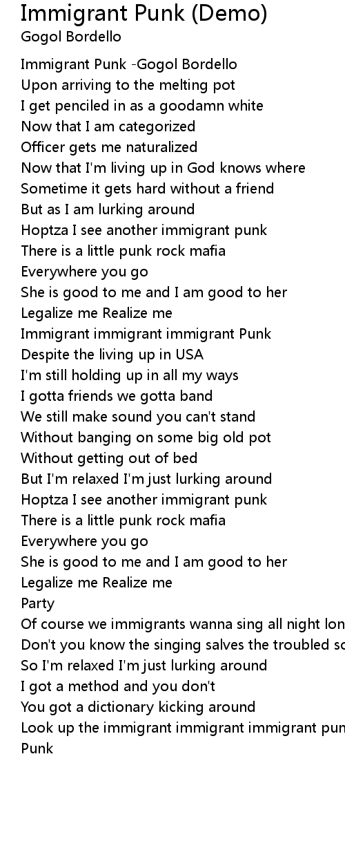 Look up the immigrant immigrant immigrant punk |