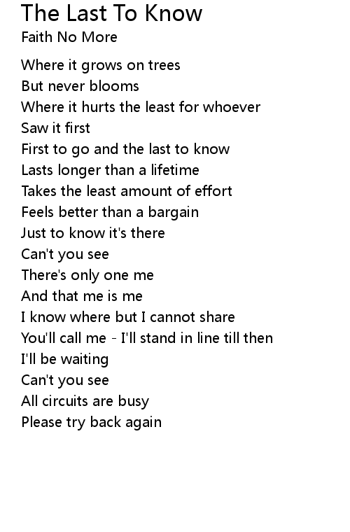 | Song | The Last To Know |
