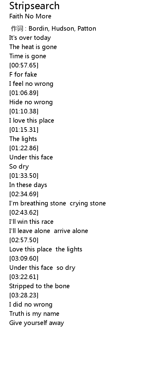 | [00:00.00] | 作词 : Bordin, Hudson, Patton |