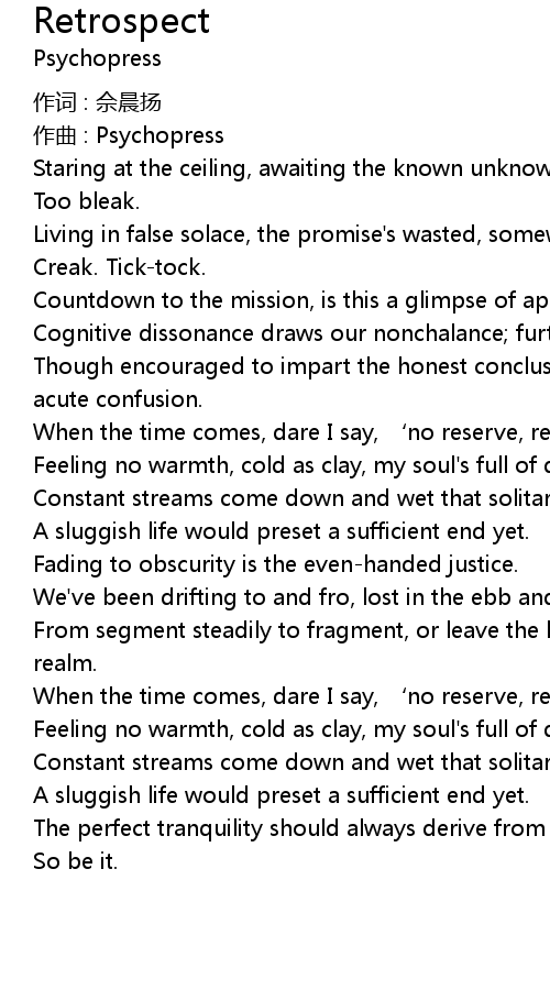 | Living in false solace, the promise' s wasted, somewhat tarnished. | |