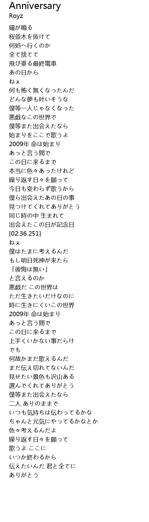 | [02:26.873] | 出会えたこの日が記念日 |
