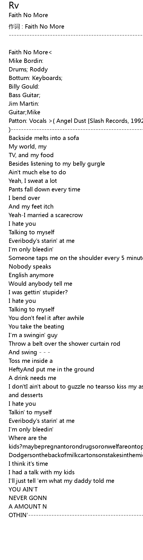 | Patton: Vocals >( Angel Dust [Slash Records, 1992] )-------------------------------------------------------------------------------- | |
