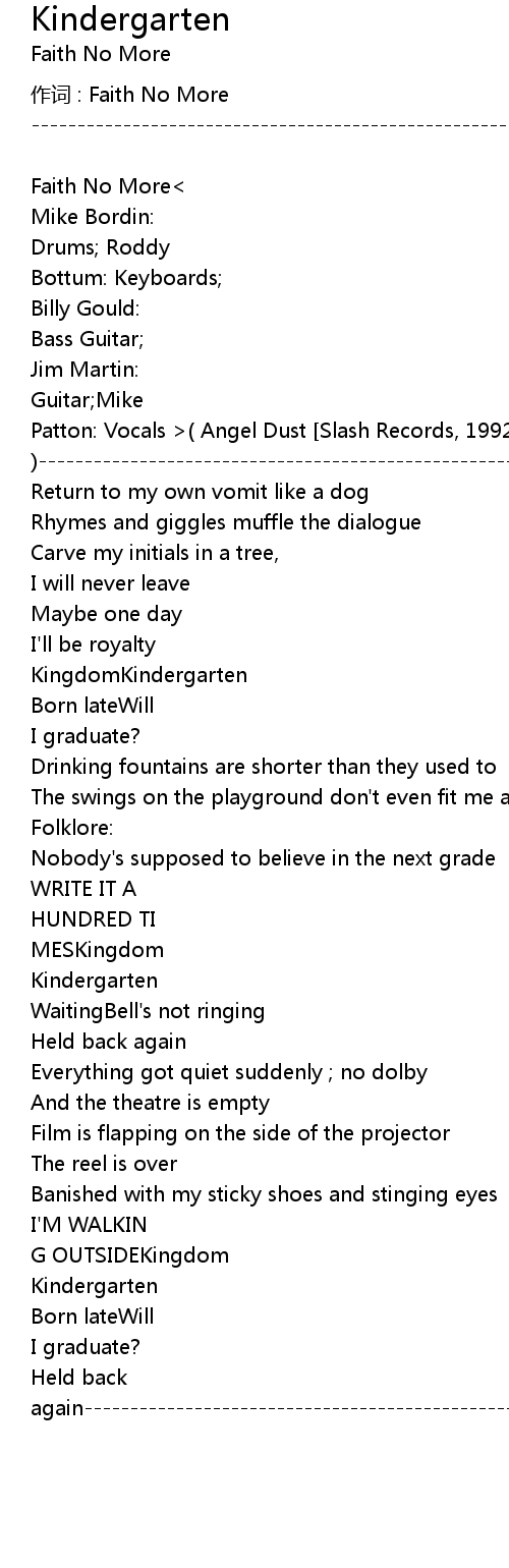 | Patton: Vocals >( Angel Dust [Slash Records, 1992] )-------------------------------------------------------------------------------- | |