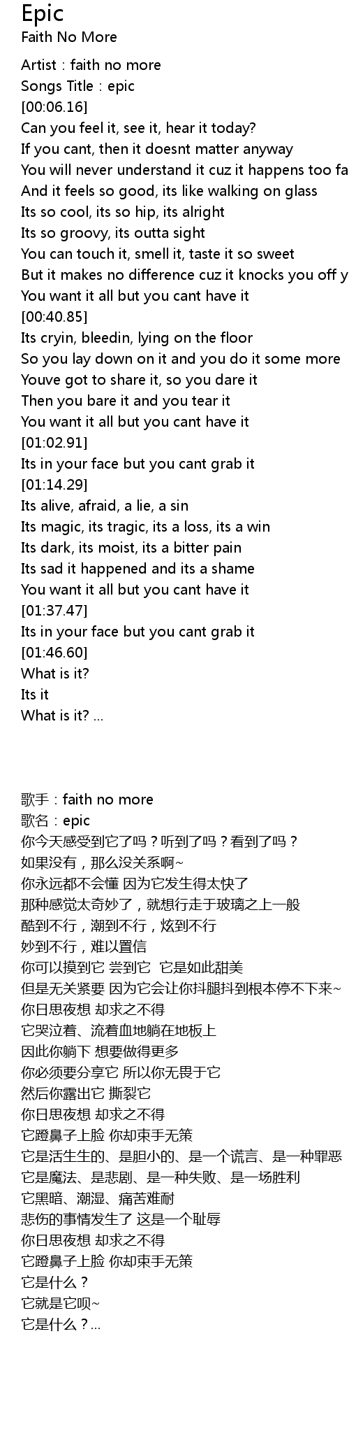 | [00:02.41] | Artist:faith no more |