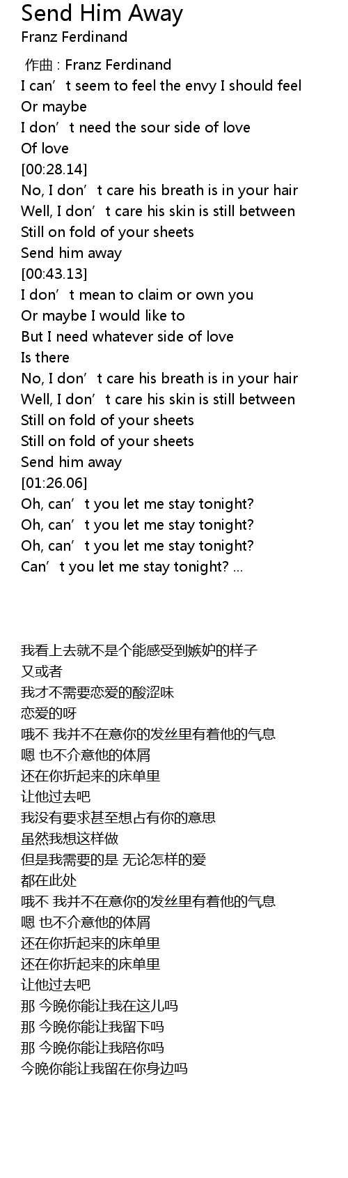 | [00:40.25] | Send him away |