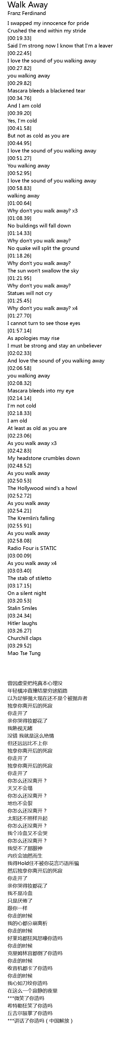As you walk away x3 |