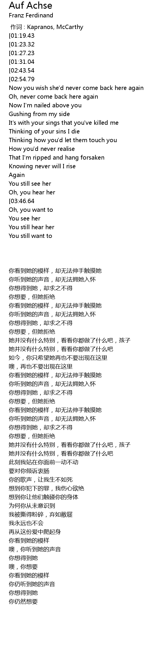 | [00:00.00] | 作词 : Kapranos, McCarthy |