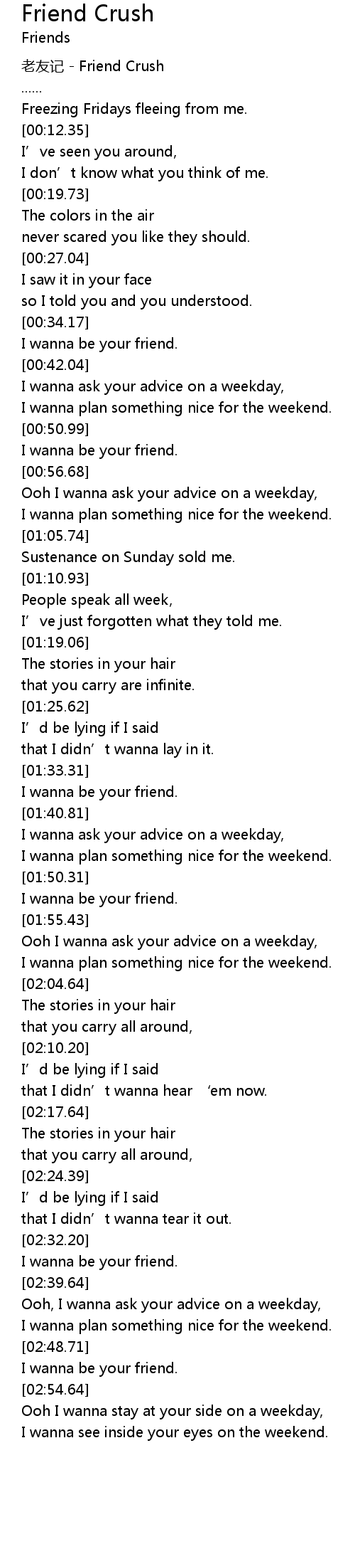 | [00:00.91] | lǎo yǒu jì Friend Crush |