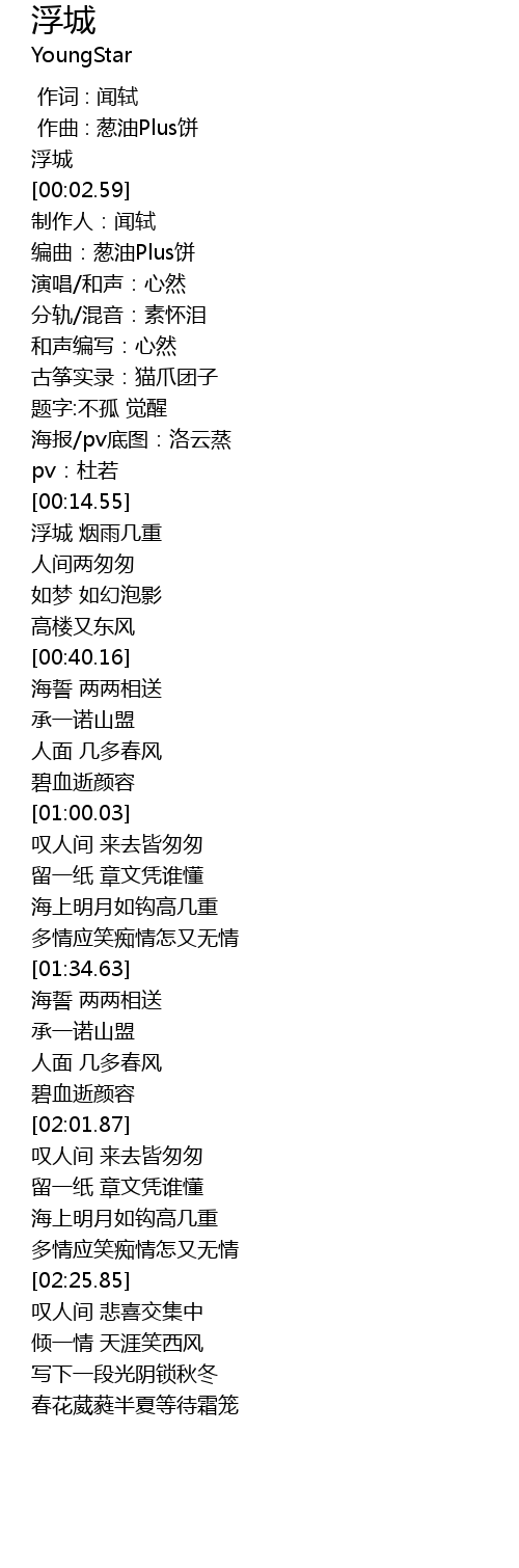 | [01:00.34] | 叹人间 来去皆匆匆 |