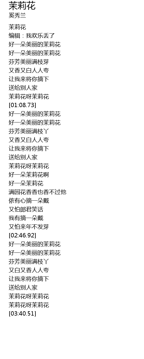 | [01:42.68] | 茉莉花呀茉莉花 |